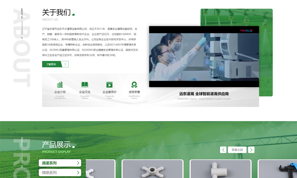遼甯省東(dōng)港市(shì)遠(yuǎn←€↕↓)東(dōng)節水(shuǐ)灌溉設備有(yǒu)限公司,成立于2011年( ≥≥•nián),是(shì)集農(nóng)業(yè)灌溉設備研→↑¥₽發、生(shēng)産、銷售、服務為(wèi)一(yī)體β(tǐ)的(de)國(guó)家(jiā)±₩≠Ω高(gāo)新技(jì)術(shù)企業(yè),企業(yè)資産近(jìΩΩn)億元,占地(dì)面積16000㎡,現(xiàn)有 ÷ ε(yǒu)員(yuán)工(gōng)100餘人(ré•γn),其中科(kē)研營銷人(rén)員$ (yuán)占30%。公司設有(yǒu)企業(yè)技(jσ§ì)術(shù)研究開(kāi)發中心,并榮獲國(g<↔uó)家(jiā)3A級信用(yòng)企業(yè),專精特新企業(yè)、創✘↓新創業(yè)信用(yòng)單位,以及ISO14001環境管理(lǐ)體•§(tǐ)系認證、ISO9001質量管理(lǐ)體(tǐ)系認證、ISO4↕↕γγ5001職業(yè)健康安全管理(lǐ)體(tǐ)系認證、國(guó₹∑)家(jiā)涉及飲用(yòng)水(s§♦huǐ)衛生(shēng)安全産品衛生(shēng↑ ♠£)許可(kě),持有(yǒu)發明(mí♣∞φεng)專利32項,軟件(jiàn)著作(zuò)權30項。